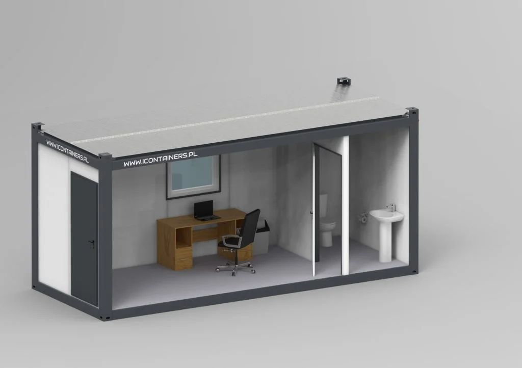 Der Sozialcontainer der Fa. INCONTAINERS zeichnet sich durch gute Qualität von Wänden, Fußböden und Decken aus und ist daher universell einsetzbar. Jeder Container wird mit einer kompletten Elektroanlage, d.h. Beleuchtung, Steckdosen und Heizkörpern ausgestattet. Der Kunde wählt selbst solche Einzelheiten wie Anzahl und Abmessungen der im Container installierten Fenster, Ausstattung mit Außenrollläden, Türtyp sowie Anordnung der Trennwände.